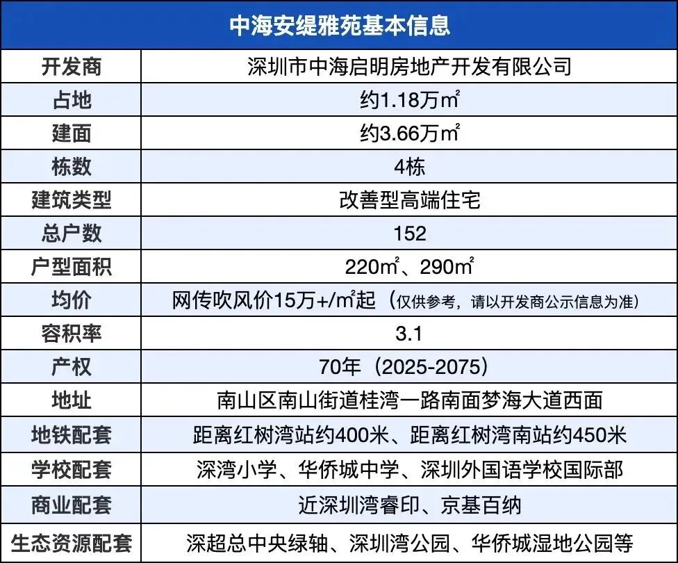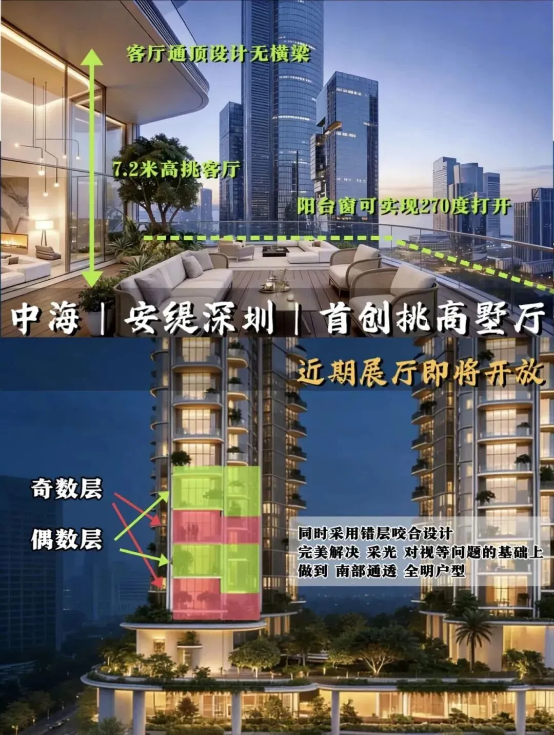 最新消息!深圳湾地新豪宅落地后,掀起一番热潮!前阵子gad发布了「安缇·深圳」(备案名:安缇雅苑)的中标方案可谓非常惊艳,这是位于深超总的中海住宅项目。这次中海首次引入“安系”到深圳,颠覆传统公建化立面!2层纯板楼设计、仅152套纯大平层、车位比达1:2.35,住宅容积率低至3.1,全新的7.2米挑高设计,从效果图来看非常惊艳。将按第四代住宅标准设计,实用率传将达到95%以上,顶奢定制工区立面十分值得期待!可以说是深超总核心区难得的低密纯宅社区。近期开展厅,6月份左右入市!项目仅有152套约200-235-290-㎡的大平层四房户型,其中中间户200-235㎡是南北通透户型,端户约290㎡带7.2米挑高墅厅大露台户型。建筑限高100米,这在以高楼林立著称的深超总,简直是“异类”,最新户型图已经出炉!具体楼盘参观详情,可以扫码林经理预约参观了解!销售会谈了解到,这次的产品会结合世界三大豪宅建筑标杆圣地特色:新加坡的垂直绿化、迪拜超未来主义建筑、迈阿密热带豪宅手法,创新打造全新的豪宅产品。
