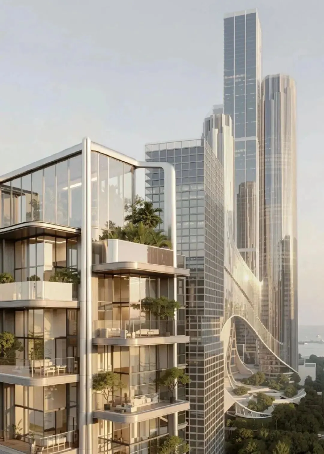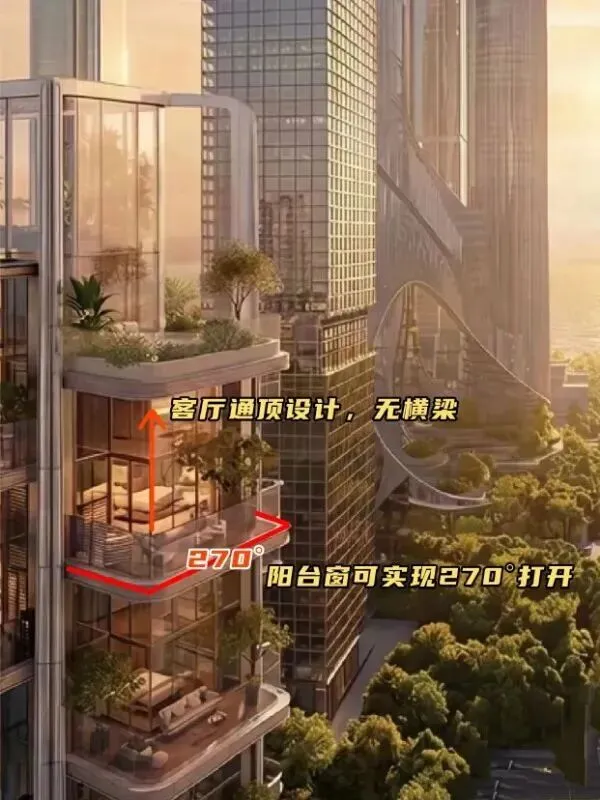 项目打破深超总主流玻璃幕墙公建化立面约束,预计采用高品质石材/铝板搭配大面积玻璃,兼顾通透感与豪宅质感。开放式阳台与飘窗的设计,让建筑更具居住温度,形成辨识度极高的“非标豪宅”风格。