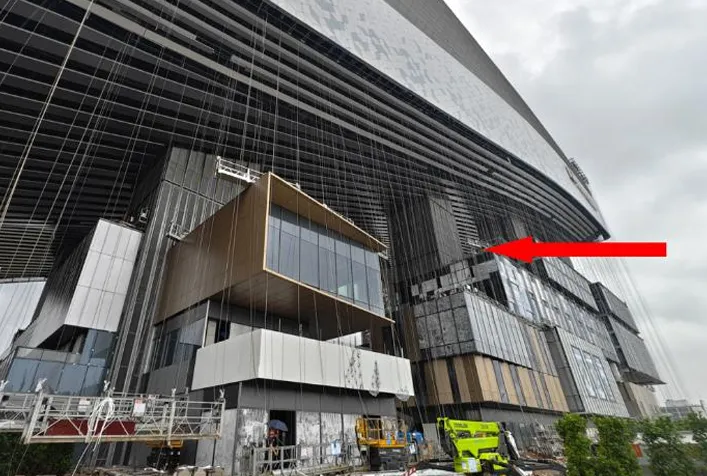 次日下午14时35分许,深圳不二公司项目经理何某强巡查工地防台风措施落实情况时发现1栋幕墙工程施工区域下方的悬吊平台被卡阻未降落至地面,于是交代上海力廷公司劳务班组长常某涛安排工人将其落地并进行捆绑固定。
