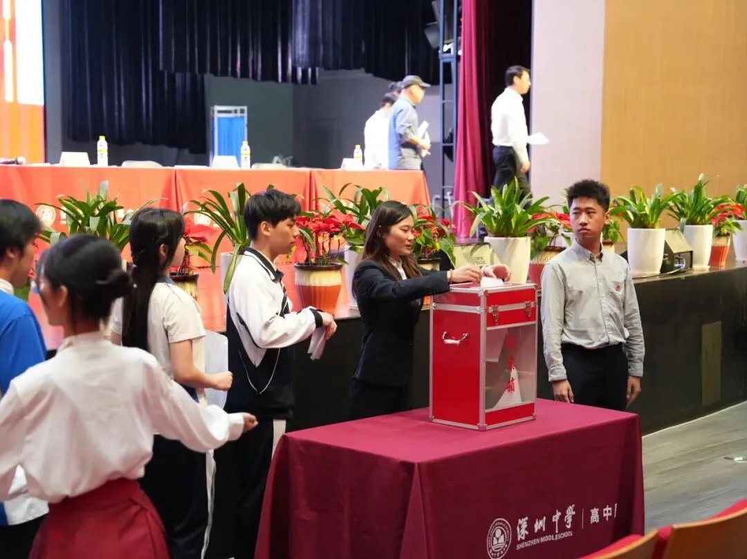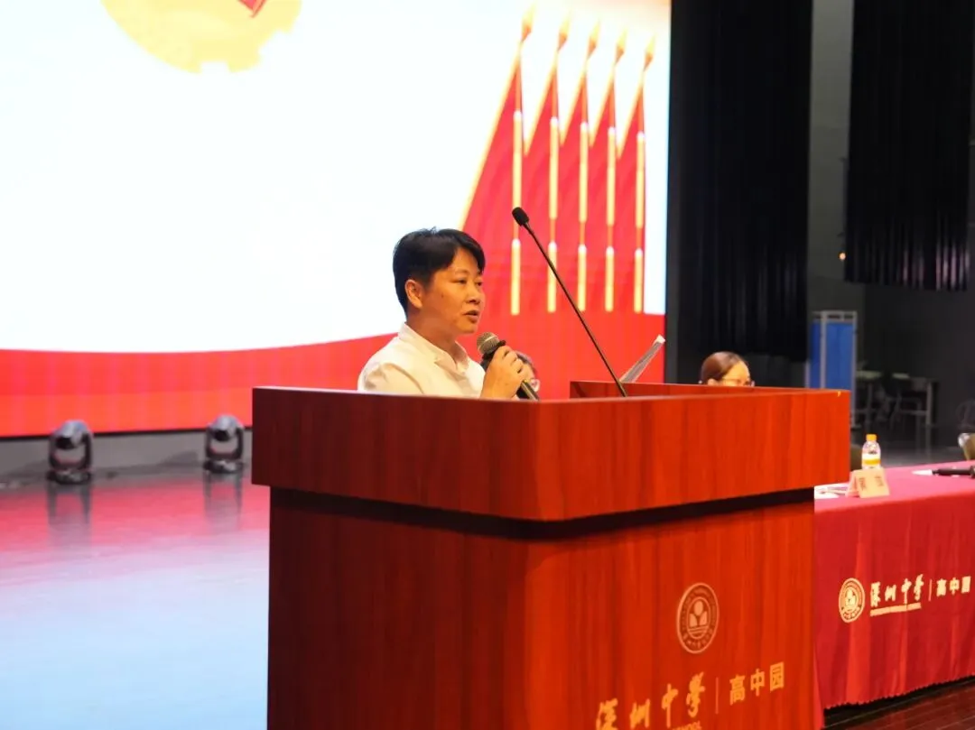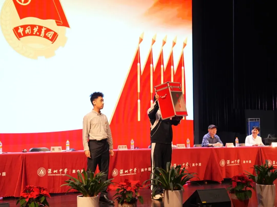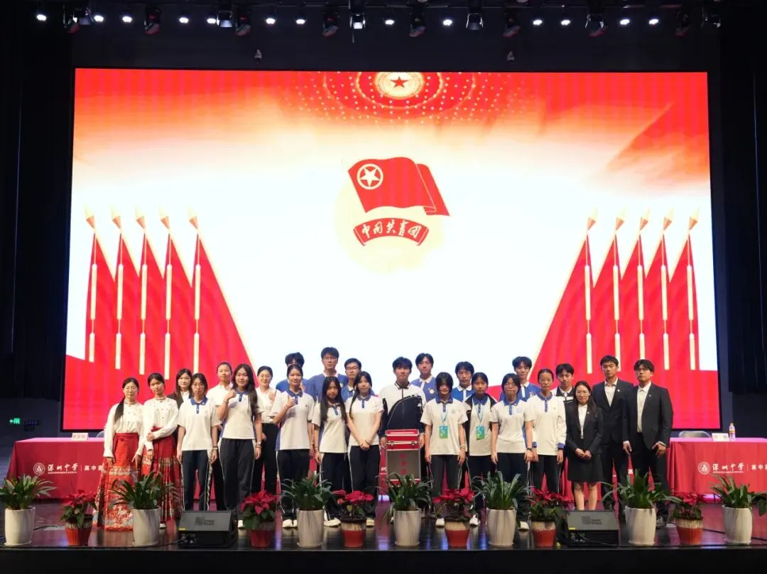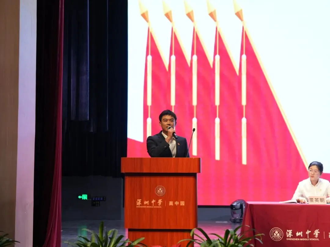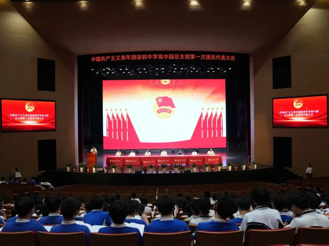 2026年4月1日,中国共产主义青年团深圳中学高中园总支部第一次团员代表大会在D2演艺厅胜利召开。本次大会严格遵循共青团组织章程和相关工作程序进行,圆满完成各项既定议程。大会特邀深圳中学高中园熊志松校长,郭胜宏副校长,党委办公室主任彭定进,学生处主任陈坚、副主任黄萍、副主任茆翼出席;同时邀请深圳市第二高级中学深汕实验学校的团委书记陈曼玉莅临指导。我校优秀教师代表、各年级优秀学生团员代表共同参会。与会人员一道总结过往工作、擘画发展蓝图,大会顺利选举产生第一届团总支部委员会,为学校共青团工作高质量开展筑牢坚实组织基础。