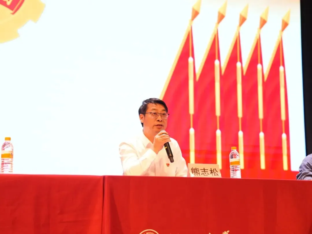 熊志松总校长代表上级党委宣读会议批复文件并致贺词,充分肯定了学校共青团工作成效,对新一届团组织提出工作要求。