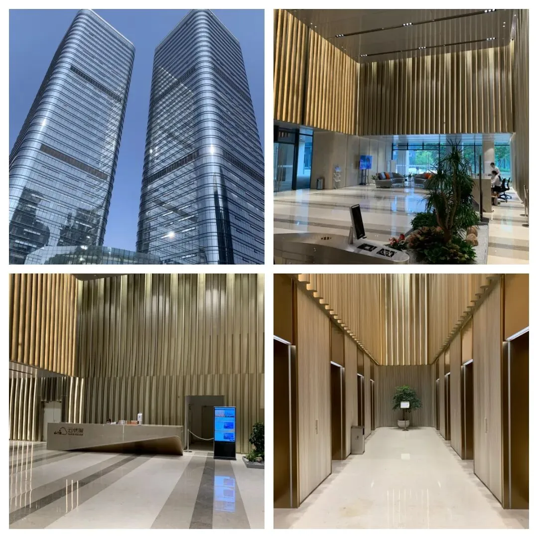 大堂:大堂挑高约10米,采用高端石材及艺术装置设计,彰显企业高端形象;配备智能门禁系统(支持人脸识别、二维码),与大堂道闸及电梯派梯系统联动,提升通行效率;