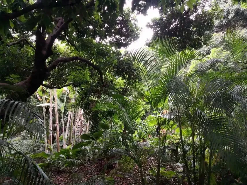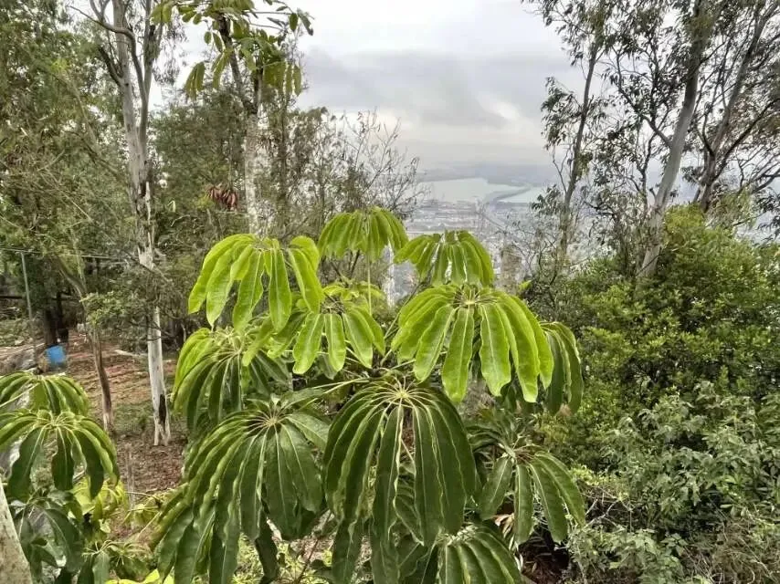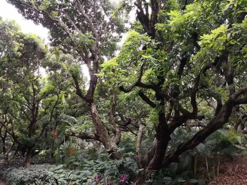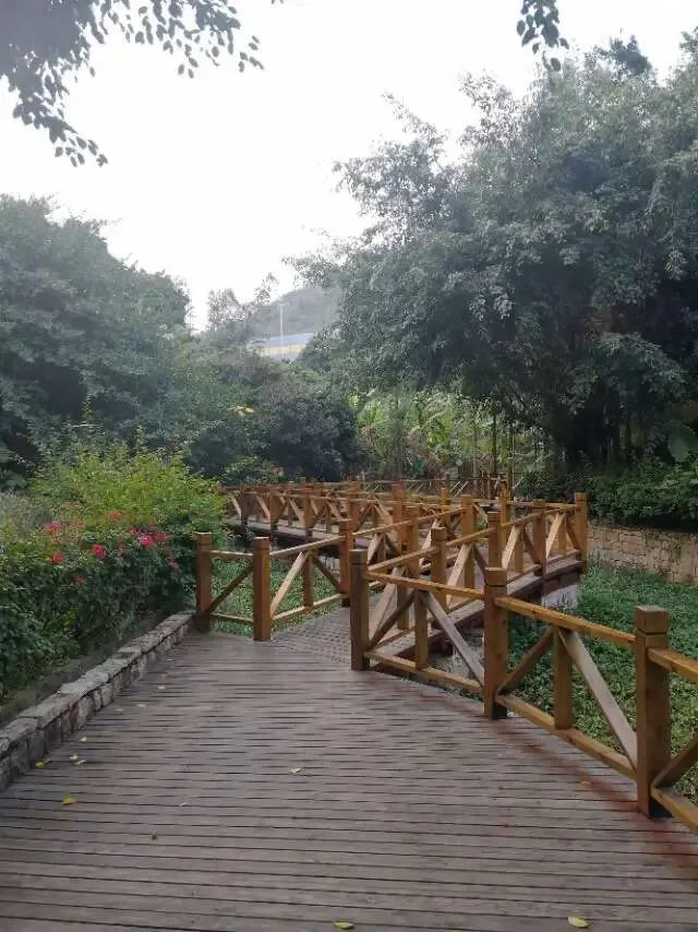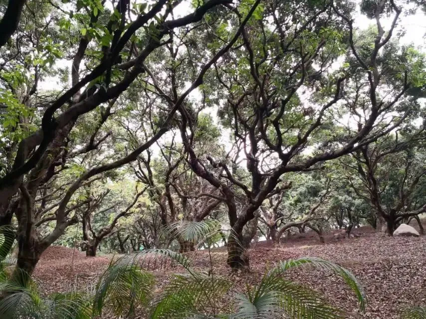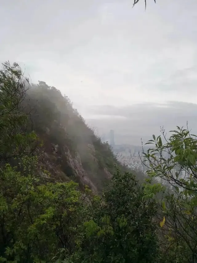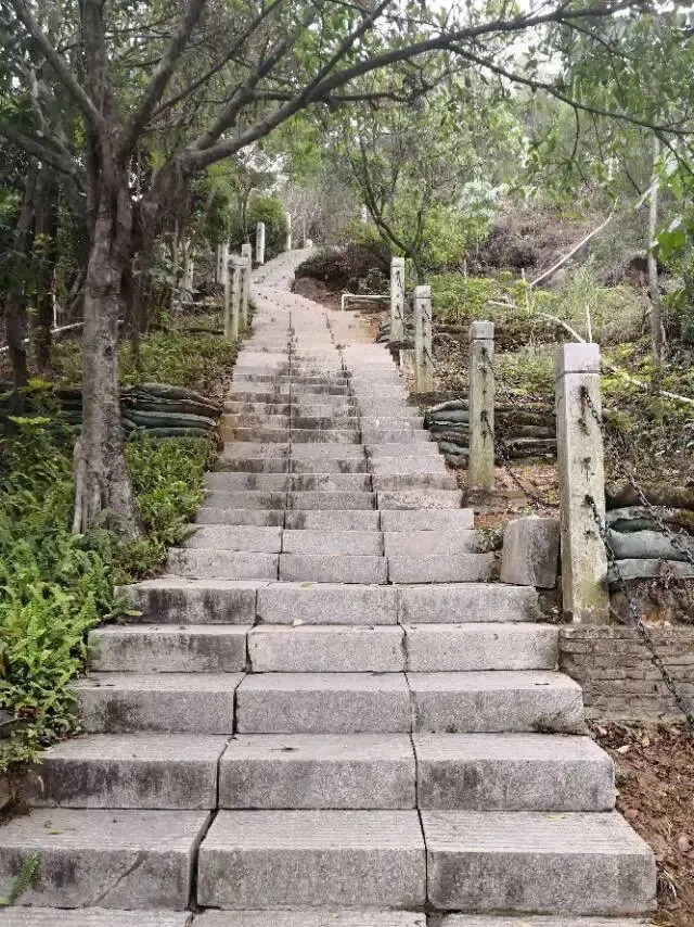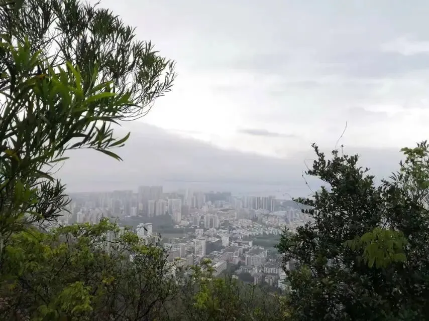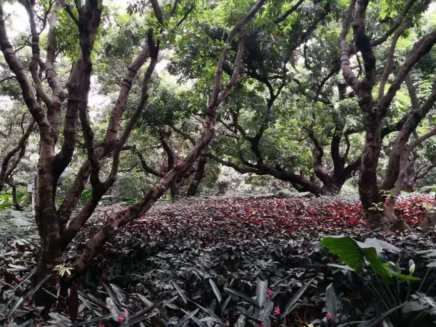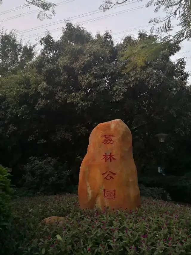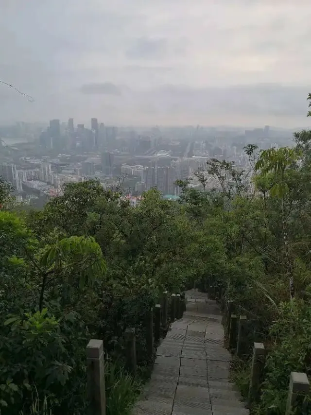 我是穿过荔林公园上山的。“日啖荔枝三百颗,不辞长作岭南人”。公园内植物种类繁多,尤以荔枝为主,浓荫蔽天,掩映成趣。道路阡陌纵横,曲径通幽,青砖铺就的健步道古朴雅致。一条细窄却相对平坦的柏油小路,作为自行车道却也让人赏心悦目。只是间或便能看到的“小心有蛇”的醒目牌,总是让人心有余悸、惴惴不安。