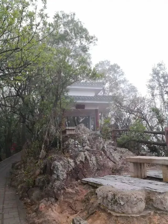 天下大小山头,叫“南山”的不少,主要还是源于“寿比南山”这句话,沾点寿气。深圳的这座南山,不老松未见一棵,荔枝等却是漫山遍野,郁郁葱葱。山上却也建了几座亭子,均以“寿”字命名。