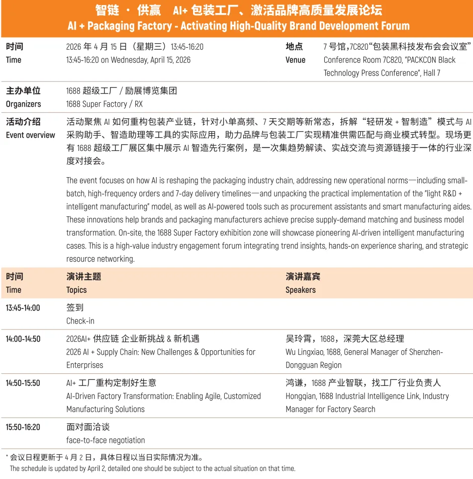 活动介绍:传统线下获客举步维艰,线上新媒体红利近在眼前却无从下手?无数包装企业正深陷“想做不会做、做了 没效果”的流量困局。为此,WEPACK 2026 世界包装工业博览会重磅打造「包装流量创作者沙龙」,特邀5位 垂直领域实战达人亲临,手把手拆解包装行业流量打法,助力企业打通线上获客全链路!