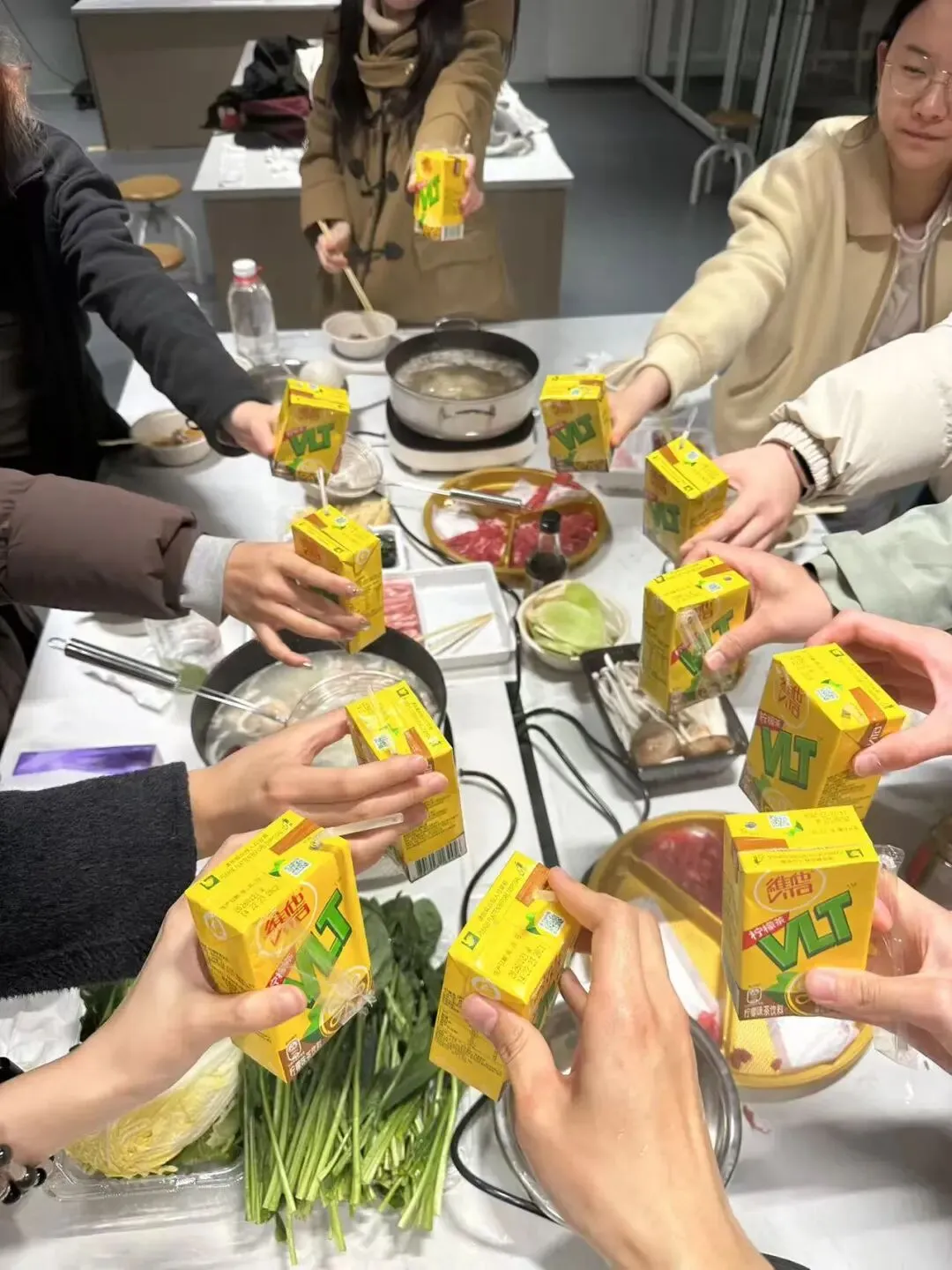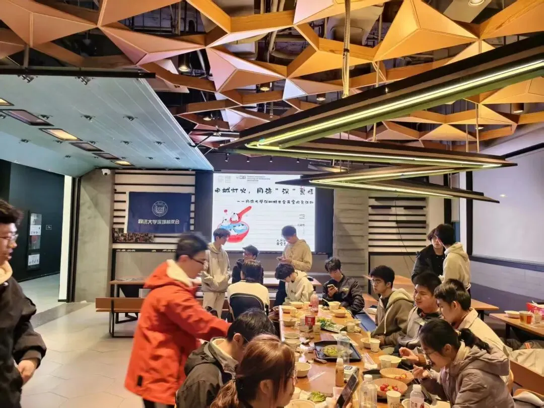 在嘉定校区,14位同学相聚一堂。3大袋食材、3口锅,椰子鸡、菌菇汤、潮汕牛肉火锅在沸腾间翻滚出温暖与美味。火锅之后,师姐寄来的豆沙馅和抹茶馅汤圆成了点睛之笔,大家围坐涮肉、煮汤圆,欢声笑语不断。