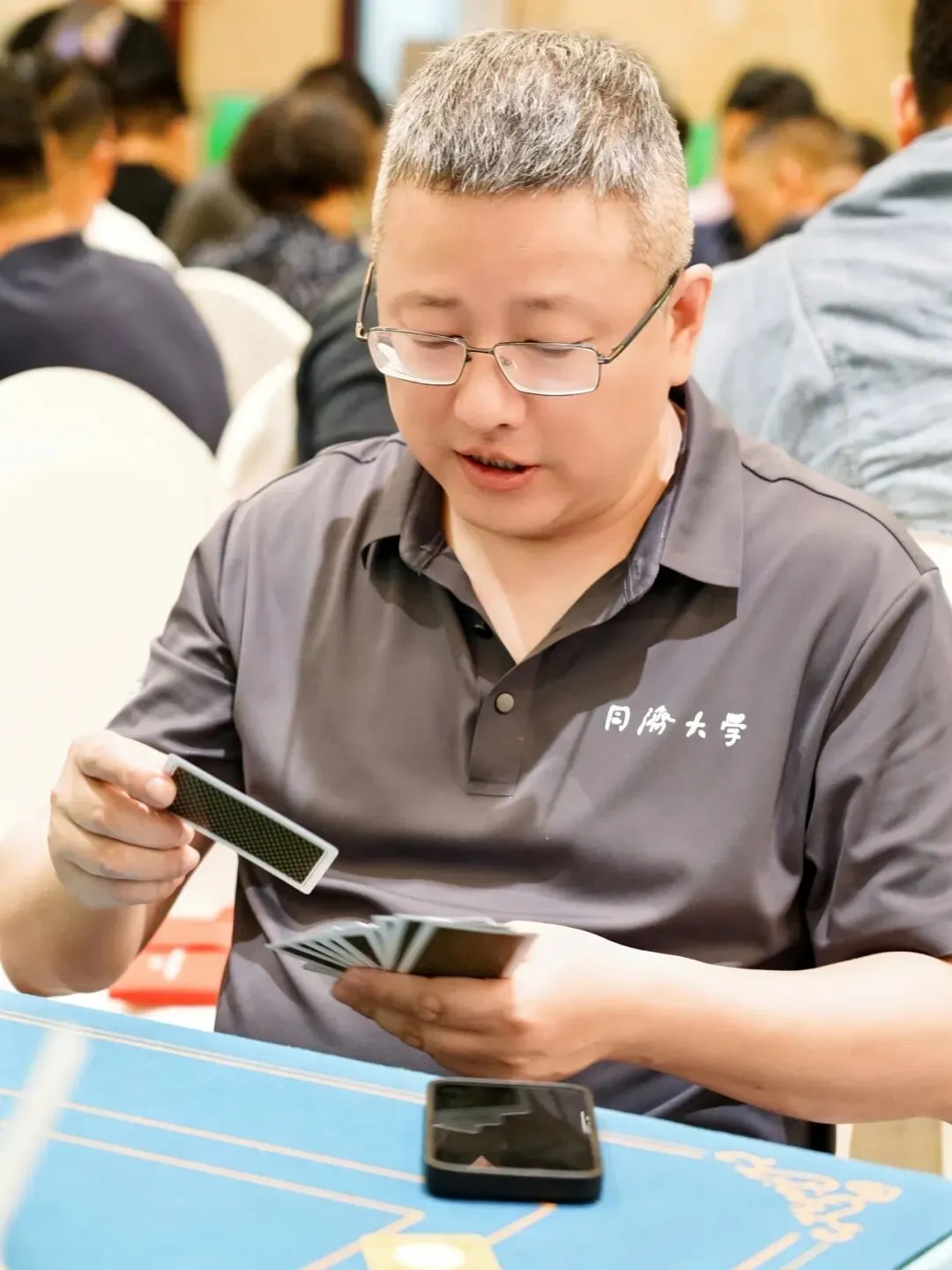 3月28日,同舟共济战队马不停蹄,参加了“2026壹点耕耘杯大湾区复式掼蛋团体赛”。面对来自大湾区的52支高水平队伍,经过一天6轮激烈比拼,同舟共济战队发挥稳健,前5轮四胜一平,在第六轮杀入第一桌,与几位职业掼蛋选手同台竞技,最终取得第七名的优异成绩,展现出了强劲的竞技实力与良好的团队风貌。