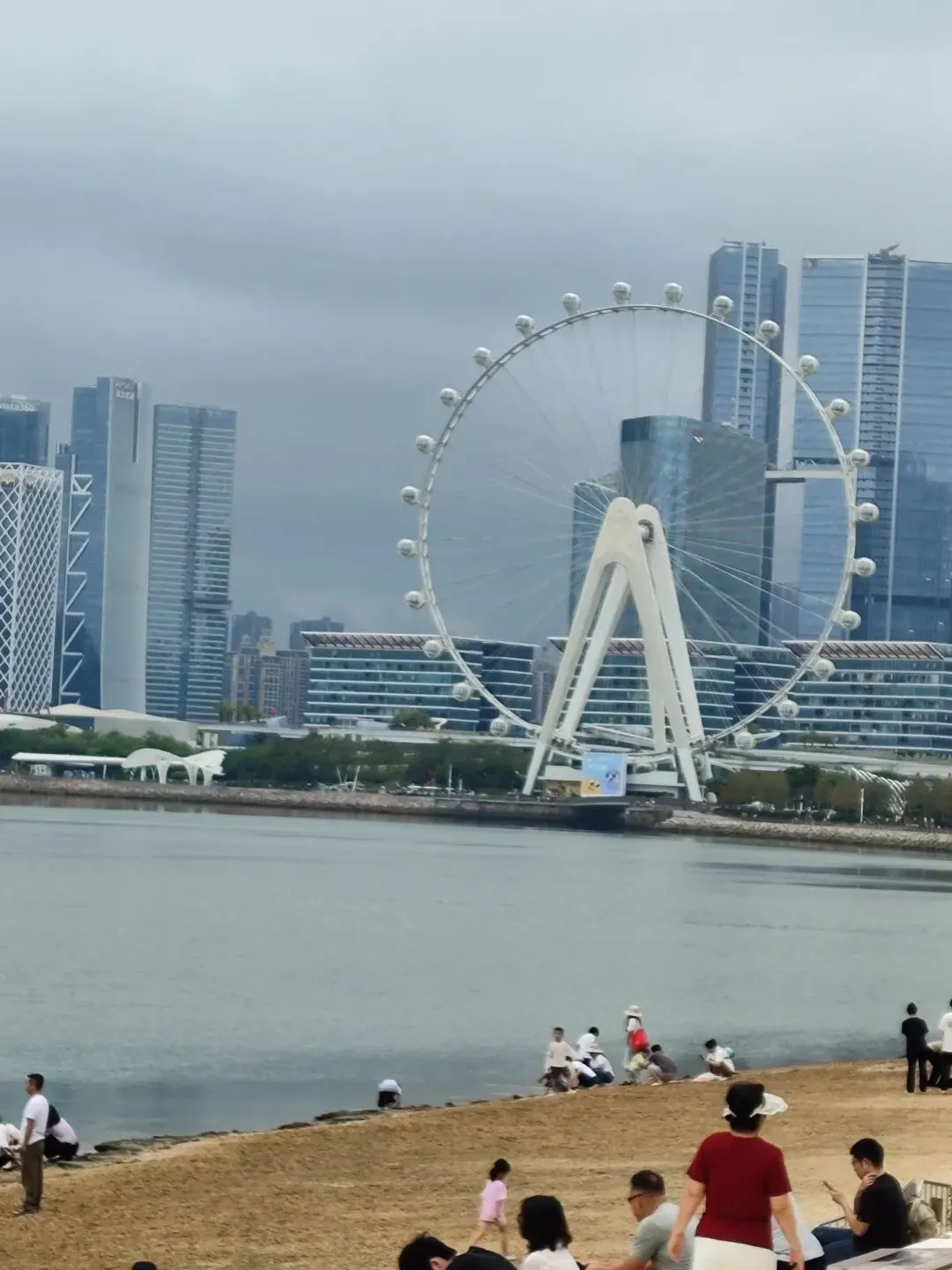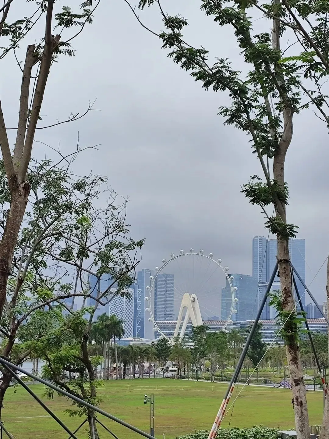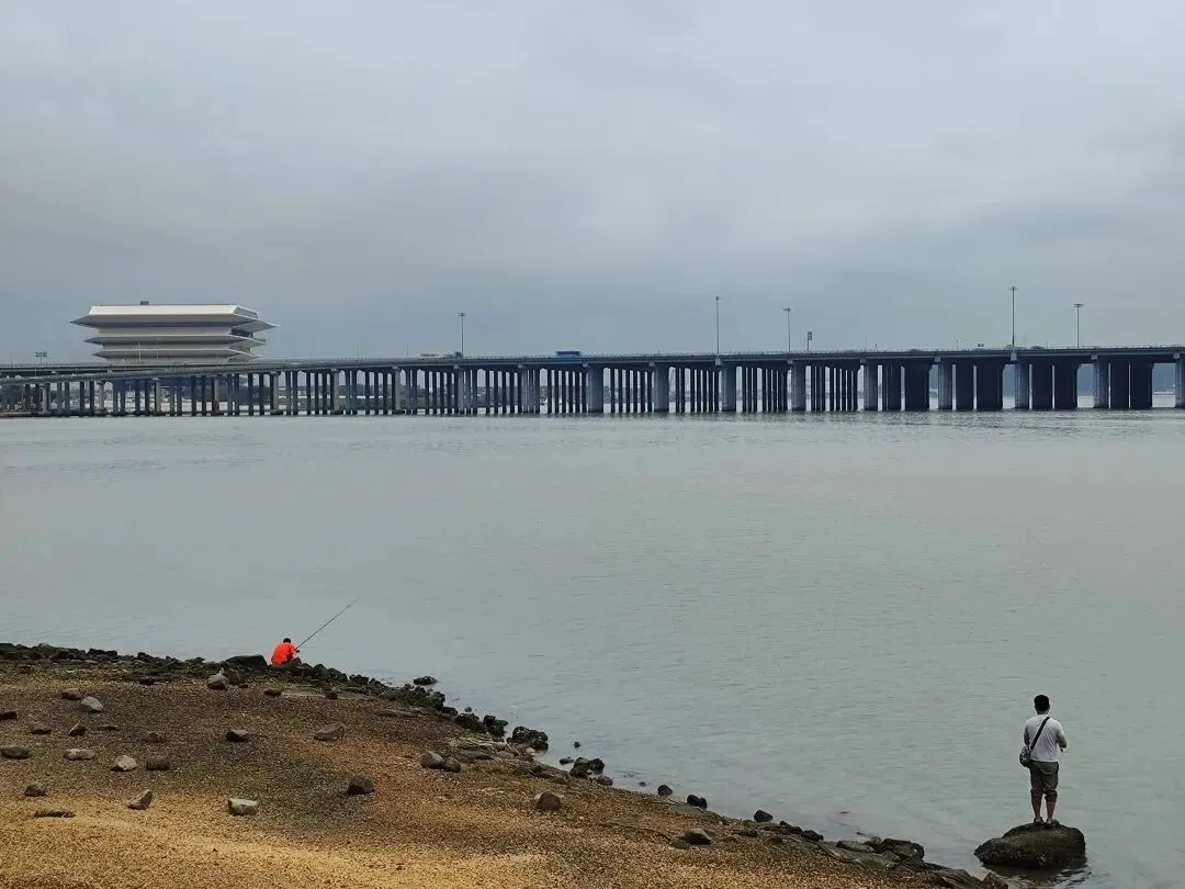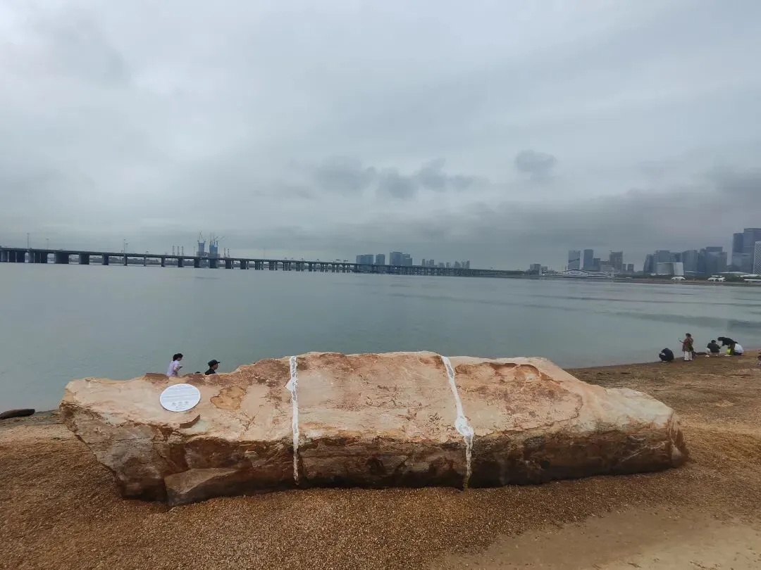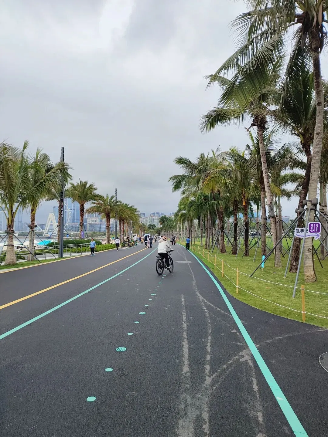 跨线桥,一边宝安区,一边南山区吗?是否以此桥分界管辖,没有细查。公园人流如织,和家人散步、观海、看夕阳,值得一玩。期待“奶龙”回归,孩子喜欢奶龙,为满足孩子愿望,过来一睹风采,失望没看到。