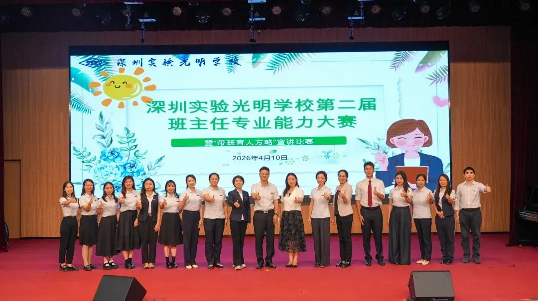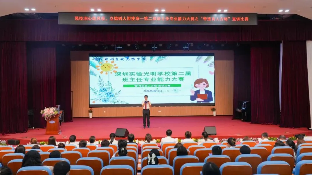 为全面提升班主任专业素养与带班育人能力,深圳实验光明学校于2026年3月至4月成功举办了第二届班主任专业能力大赛系列活动。本次大赛以“润心强技·立德树人”为主题,涵盖书面测试、专题培训、带班育人方略宣讲三大环节,为全校班主任搭建了一个展示智慧、交流经验、锤炼本领的成长平台。