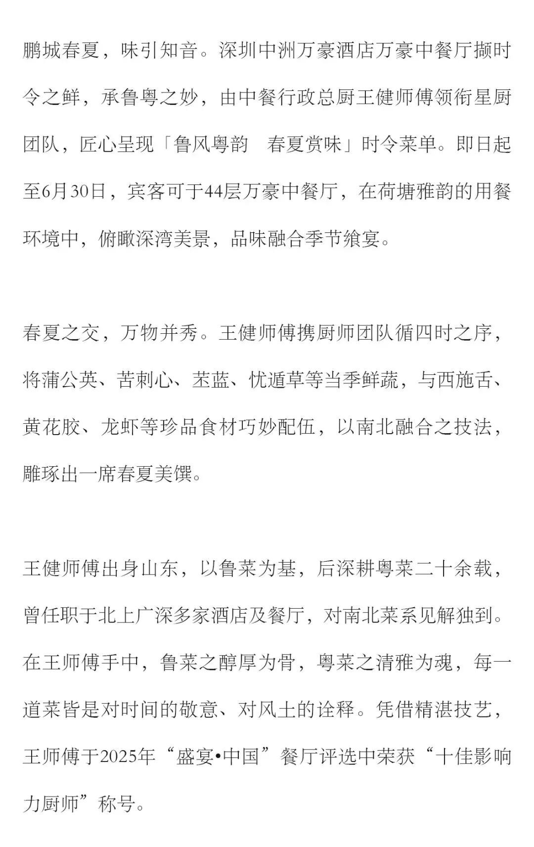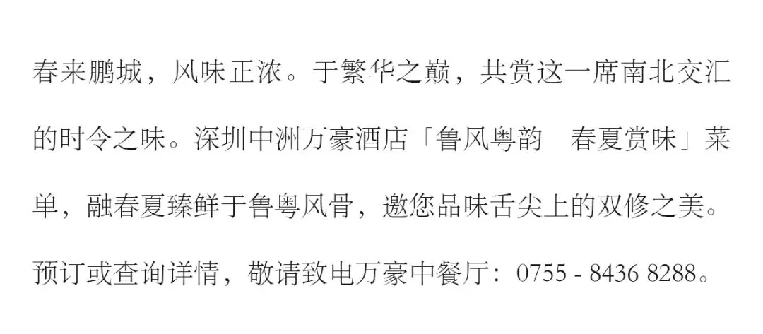 >鲁风粤韵 春夏赏味 深圳中洲万豪酒店万豪中餐厅
