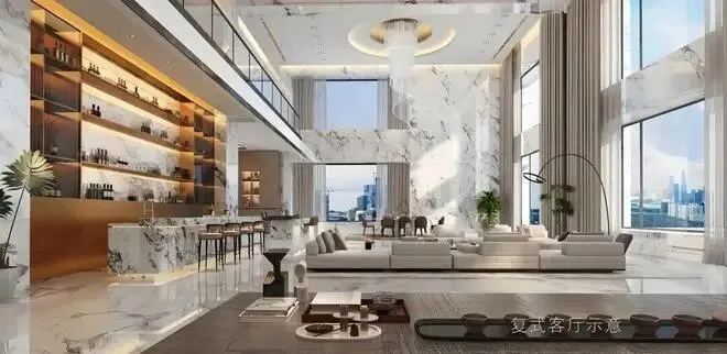 •朗阔层高:单层高约3.5m、客厅双层挑高,突破空间想象,划定深圳豪宅新标准