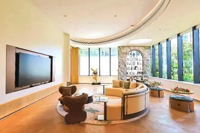 建面约386㎡四房两厅三卫+家政套间,尺度超然的巨厅将空间优势充分发挥,直连多功能休闲区。