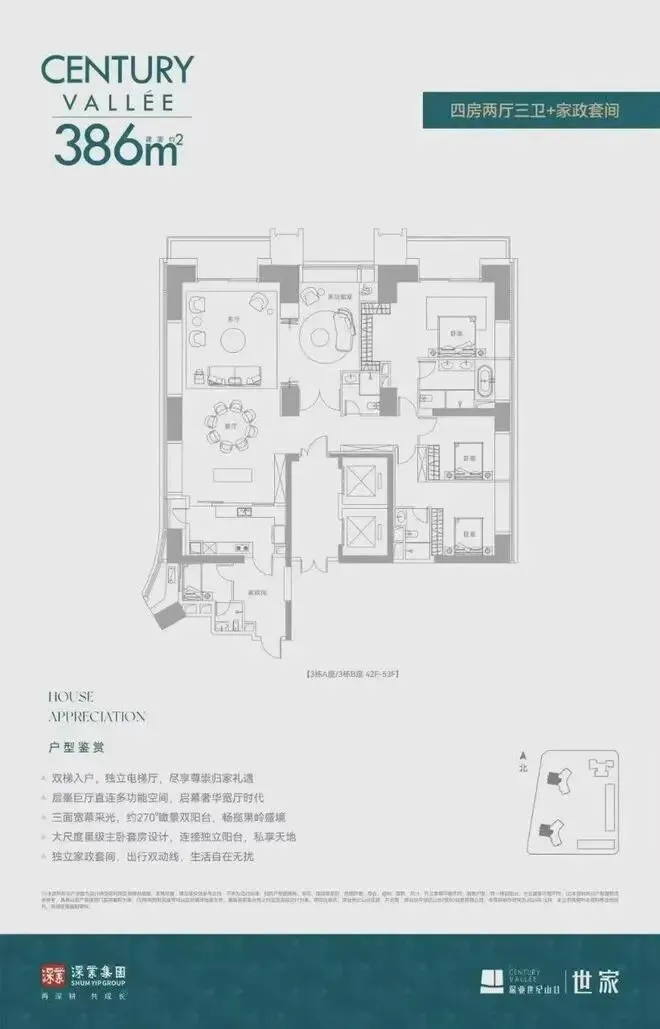 深业世纪山谷·世家在售约233/280/386㎡景观纯粹大平层住宅产品,约420-1080m²云端复式,3.5米奢阔层高、户户瞰景观非常震撼,中央公园的葱郁静谧、城市CBD的繁华璀璨,全部近在眼前。