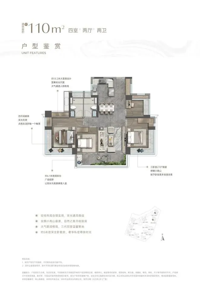 ③【前海寸土寸金 大境凤毛麟角】不止一线临山,更是三面环山,至阔约46米楼距赏山园双境,臻藏不可复制的永久一线大南山景