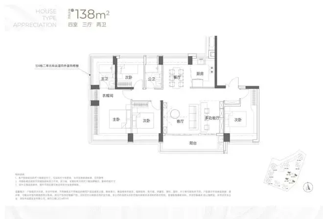 建面约138㎡4房2卫