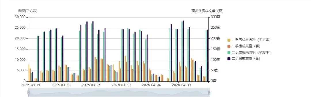 5、克而瑞:上周(4.6-4.12),全国重点30城市新建商品住宅成交面积环比下降42%,同比减少34%,与年内周均相比仍维持正增长5%,增幅显著收窄,4月前2周累计同比亦正增长6%。在经历上月末冲高后市场规模又重回至年初周度低位水平。