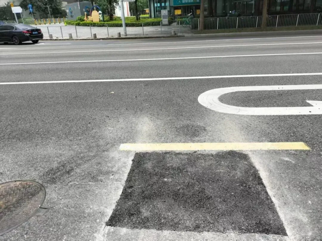 ▲龙华区民宝路沥青路面坑槽修复后