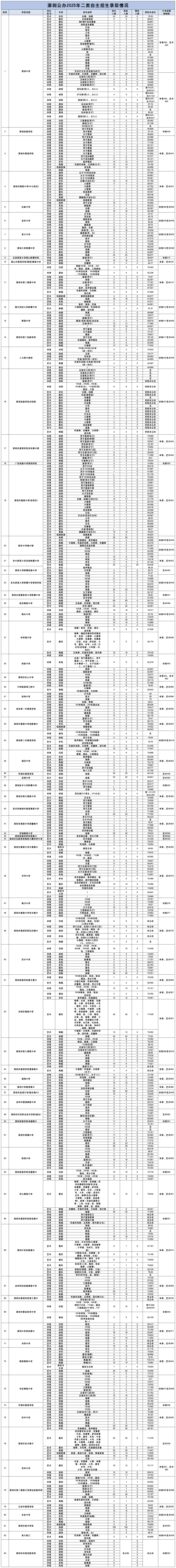 自主招生批:普通高中自主招生、深圳艺术学校、深圳体育运动学校。