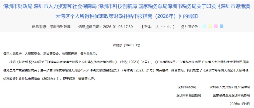 (三)本申报指南自2026年1月1日起实施,有效期1年,2025纳税年度粤港澳大湾区个人所得税优惠政策财政补贴以及2024纳税年度补贴补办申请、审核、发放,按照本申报指南执行。