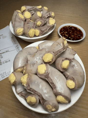 里面包着蛋,再蘸上点酱油,味道真的绝了!