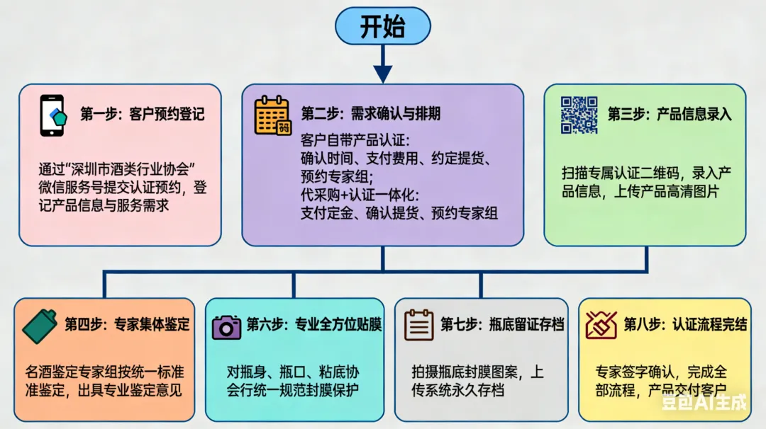 认证范围:飞天茅台(红色防伪胶帽)原箱、开箱同码;飞天茅台(透明热缩防伪膜)(后续将开放其他茅台非标产品认证)产品品相达到收藏级标准:外观完好无磕碰、污渍、破损、修磨、翻新,酒线正常无跑酒、漏酒、渗酒,属于鉴定中心白名单范围,无高危批次、无争议。收费标准:①客户自带产品认证(原箱、开箱同箱):6-30瓶60元/瓶;31-60瓶40元/瓶;60瓶及以上20元/瓶。②代采购+认证一体化6-30瓶50元/瓶31-60瓶30元/瓶;60瓶及以上15 元/瓶。③客户自带散支飞天茅台(透明热缩防伪膜)认证:6-30瓶200元/瓶;31-60瓶150元/瓶;60 瓶及以上100元/瓶。此次红胶帽茅台收藏级贴标封膜认证体系的落地,是深圳酒协名酒鉴定中心推动高端酒类市场规范化、专业化发展的重要实践,既为消费者搭建起茅台消费与收藏的“信任桥梁”,也为酒类经销主体提供了抢占市场机遇、提升经营实力的 “专业抓手”。目前,该认证体系已向深圳酒协全体会员单位及全市酒类经销主体开放,诚邀广大酒类销售商积极参与,携手共建深圳规范、健康、有序的茅台消费与收藏市场,共享茅台品牌价值提升与行业规范化发展的双重红利,实现品牌、经销主体与消费者的三方共赢。深圳市酒类行业协会名酒鉴定中心将始终秉持客观、公正、专业的原则,为全市酒类市场发展保驾护航,持续为消费者与行业经营主体提供优质、高效的鉴定与保真服务。