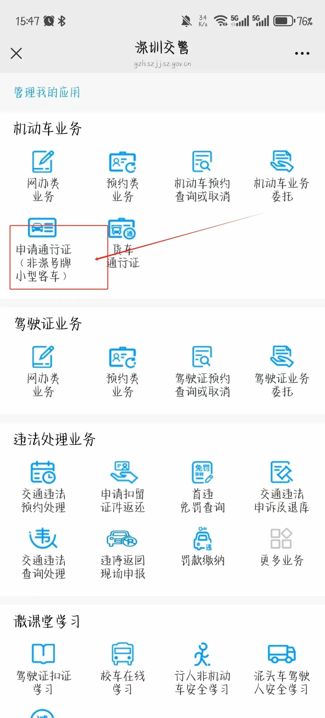 第一步:点击登录,登录成功后点击更多业务,然后点击申请通行证。