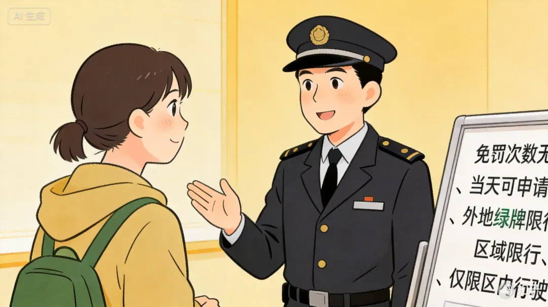 全市范围免限行:每月能申请1次,1 次可免限行1天;