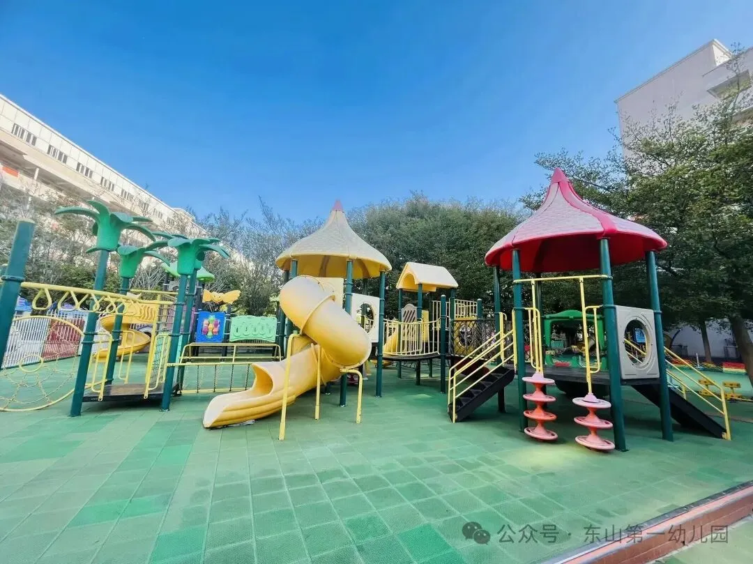 东山第一幼儿园创办于2014年2月,规模为26个班,全园占地面12000平方米,其中建筑面积8400平方米,户外活动面积4500平方米。办园理念:爱生如子育幼苗,传承经典树全人。办园目标:以爱为本 启迪智慧 快乐成长!培养目标:“创新、兴趣、诚信”全面发展的新时代儿童。东山第一幼儿园是一所市一级和A级厨房等级的优质幼儿园,是一所足球试点园和第一批蒲公英校园。我园实行游戏化、艺术化的教育环境,能为家长们提供优质、高效的服务,让孩子们在平安、舒适、优雅、温馨的环境中成长。我园以尊重儿童、读懂儿童、发展儿童为指导方针,开设“三I”教育体系,以“一三五”的教学模式,开展了“主题教学探究”为核心课程。以“生活课程、阳光体育、星空STEAM课程”为特色教学。