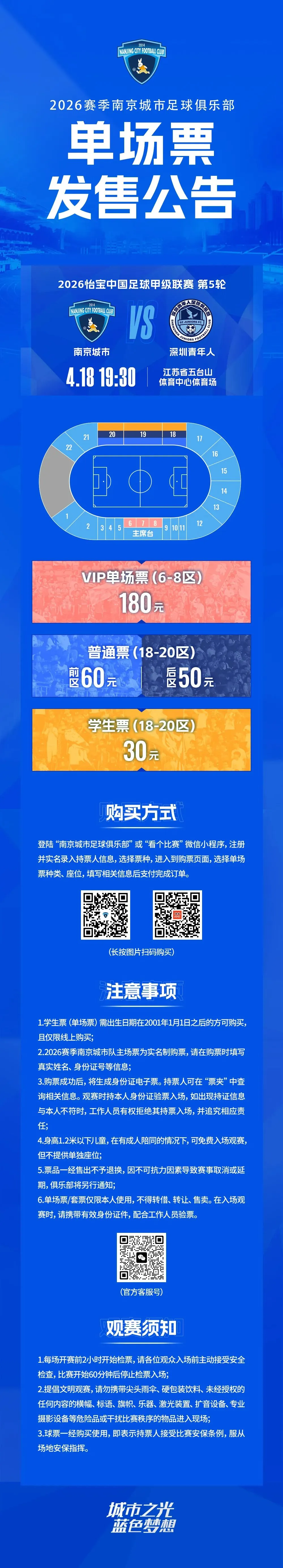 >票务公告|中甲第5轮 南京城市VS深圳青年人 单场票开售!