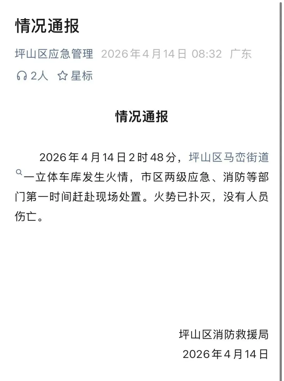 看热闹的就散了吧,是坪山区马峦街道一立体车库发生火情,火势以扑灭,无人员伤亡。