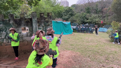 孩子们化身丛林战士,戴上装备,拿起武器步入战场,战斗一触即发!