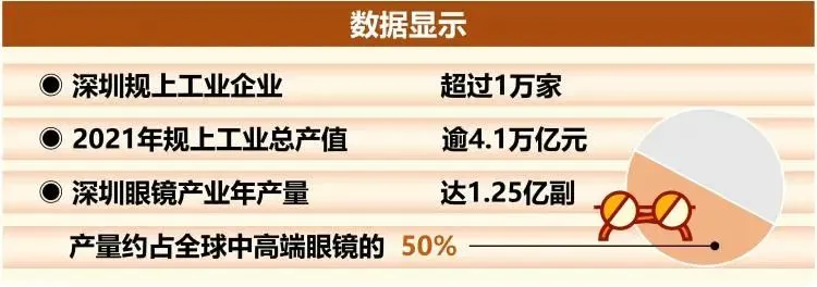 深圳制造正不断加快转型升级,加快推动迈向高端化、智能化。走进位于龙岗区的雅视司徕柏光学科技(深圳)有限公司,一款搭载了华为鸿蒙系统、极具科技感的智能眼镜引人注目。数据显示,深圳眼镜产业年产量达1.25亿副,产量约占全球中高端眼镜的50%。
