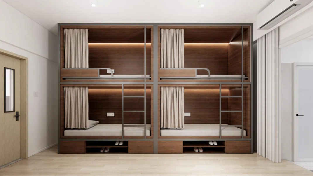 800 间全功能宿舍(4人间),独立卫浴、洗衣烘干系统,提供酒店式服务,打造 “第二个家”。