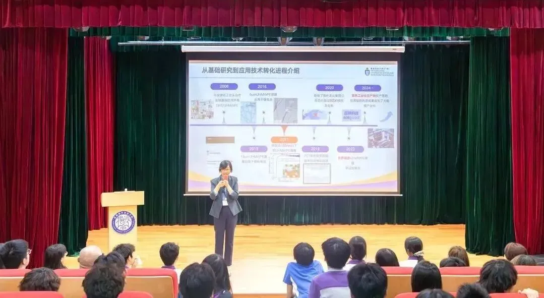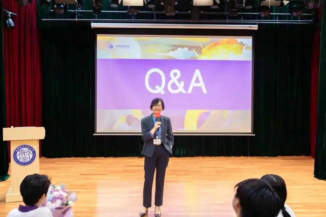 分享中,高教授还讲述了自己坚守科研原创、拒绝海外高价专利收购的经历,勉励同学们心怀家国、勇于探索。她以自己孩子中学阶段便进入实验室做科研、最终深耕学术领域的经历,鼓励梅双学子早接触科研、敢提问、敢尝试,同时向同学们发出邀请,走进香港科技大学(广州)的实验室,亲身体验科研的乐趣。
