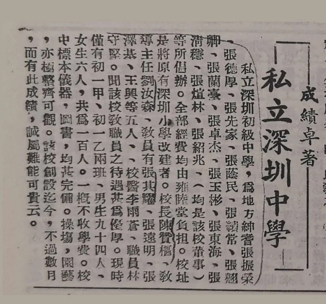 ”私立深圳初级中学新闻。