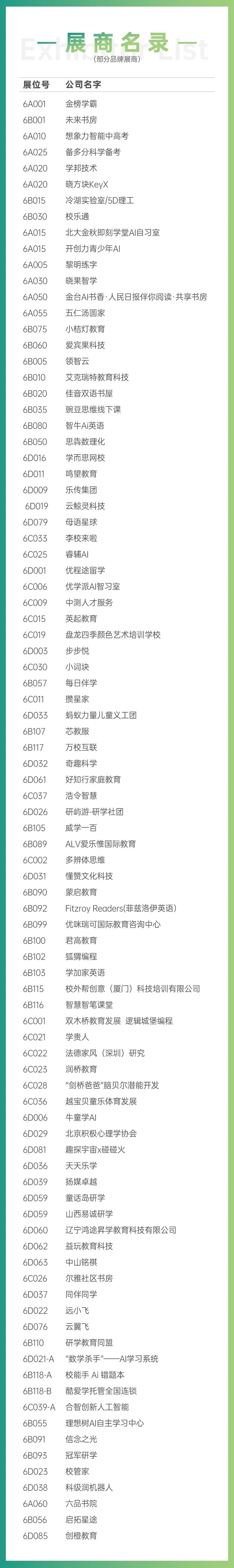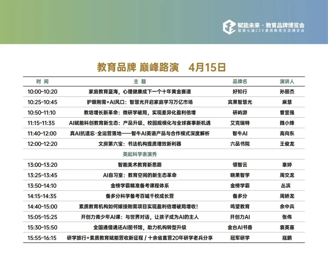 ✅100+优质参展商:覆盖素质教育、AI教育、营地研学、升学规划、家庭教育、教材教具、国际教育等全领域。
