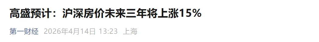 高盛预测:上海深圳房价未来3年涨15%,依据是啥?