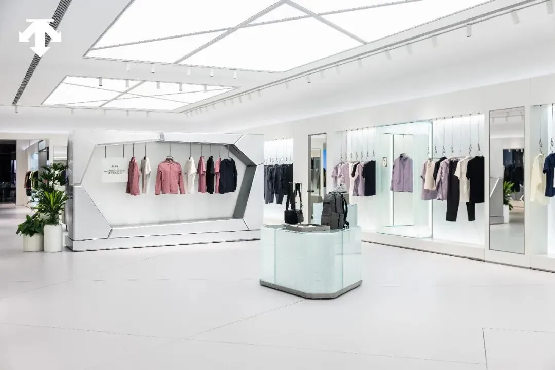 名字起得直白。走进去,地面是干净的浅色,墙面大面积留白,科技感的线性光带嵌入其中。整体基调冷静,不热闹。这种氛围跟传统运动零售的节奏明显不同——它不喊,也不催。