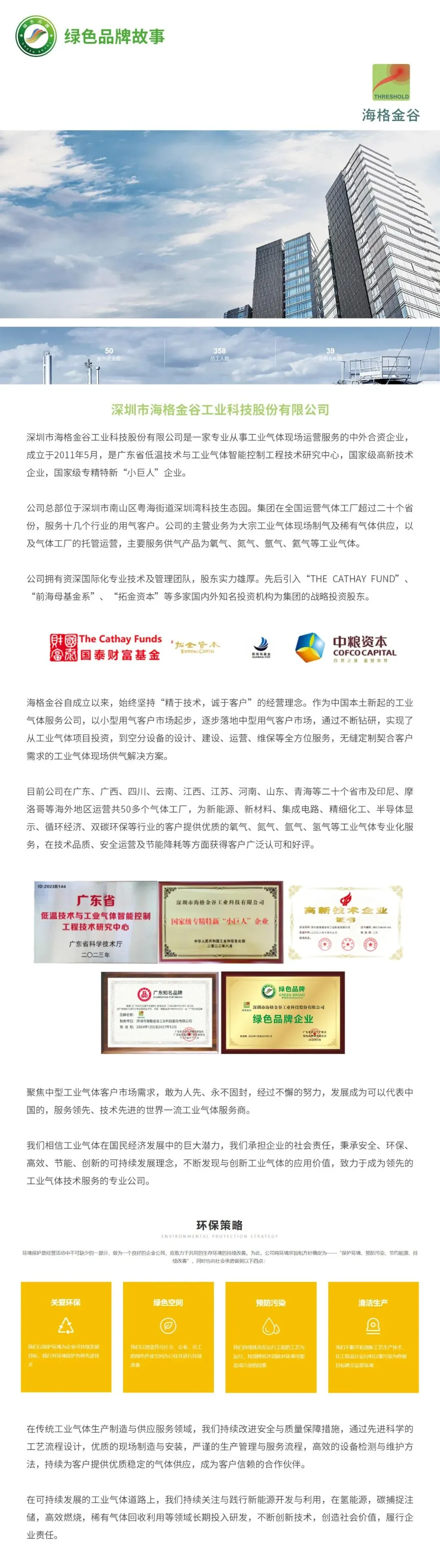 本期将带大家走进深圳市海格金谷工业科技股份有限公司。深圳市海格金谷工业科技股份有限公司是一家专业从事工业气体现场运营服务的中外合资企业,成立于2011年5月,是广东省低温技术与工业气体智能控制工程技术研究中心,国家级高新技术企业,国家级专精特新“小巨人”企业。公司专注于工业气体设备的批发、技术开发及气体工厂托管运营,业务覆盖广东、广西、四川等20个省市,运营30多个气体工厂 。