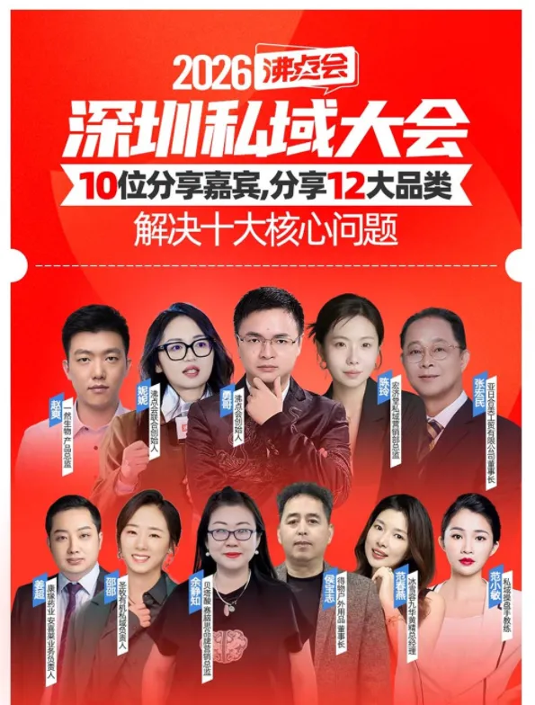 别慌!2026 沸点会深圳私域大会重磅来袭!这场聚焦私域全链路的实战盛会,将于4 月 22 日(周三)落地深圳,集结10 位行业实战大咖,覆盖12 大品类,直击私域十大核心痛点,用可复制的打法、可落地的案例,帮你解锁私域增长新密码!