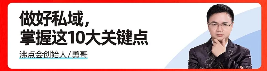🔹 沸点会创始人勇哥:《做好私域,掌握这 10 大关键点》从行业全局视角拆解私域核心逻辑,帮你理清私域运营底层思路,少走 3 年弯路。