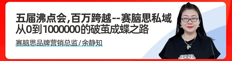 🔹 赛脑思品牌营销总监余静知:《五届沸点会,百万跨越 —— 私域从 0 到 100 万的破茧成蝶之路》复盘四届沸点会实战历程,拆解从 0 到百万的关键节点打法,给中小品牌可复制的增长范本。