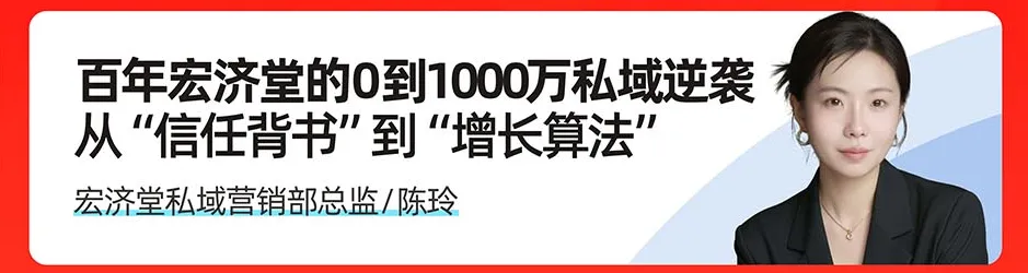 🔹 宏济堂私域营销部总监陈玲:《百年宏济堂的 0 到 1000 万私域逆袭》拆解百年老字号如何用 “信任背书” 搭建私域增长算法,实现传统品牌私域焕新升级。