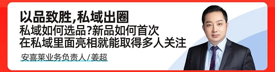 🔹 安喜莱业务负责人姜超:《以品致胜,私域出圈》聚焦私域选品核心,教你如何选品、如何让新品首次亮相就获海量关注,用产品力撬动私域流量。