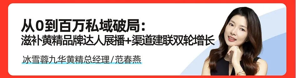 🔹 冰雪蓉九华黄精总经理范春燕:《滋补品私域破局:达人展播 + 渠道建联双轮驱动》针对滋补品信任难、转化难痛点,分享专属增长打法,解锁滋补品私域新机遇。