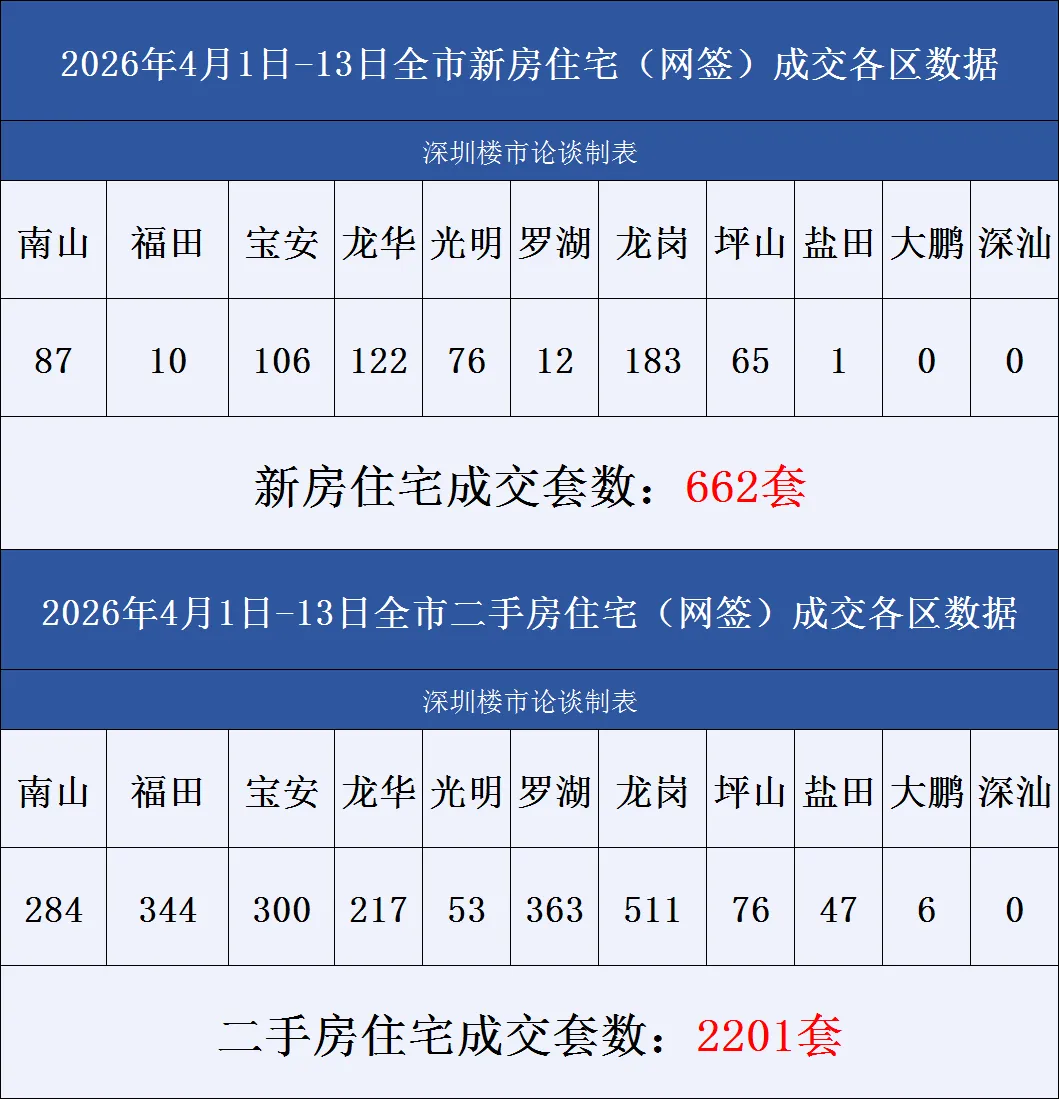 深圳楼市,4月13日一、二手房表现如何?