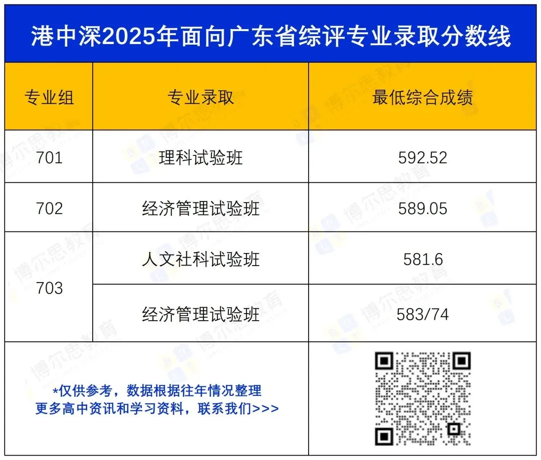 香港中文大学(深圳)综合评价采取“631”录取模式,2025年录取428人(物理类318人、历史类110人),录取分数线最高的专业为理科实验班(592.52分);分数线最低的专业为人文科学实验班(581.6分)。