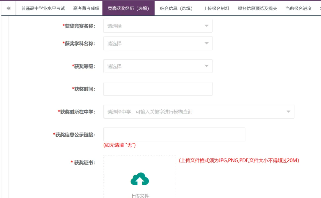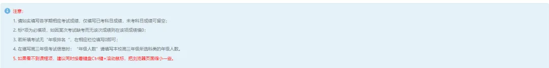 3. "高中期间的获奖记录"可填写高中阶段获得的校级(含)以上个人荣誉、本人所具备的文艺或体育特长等。