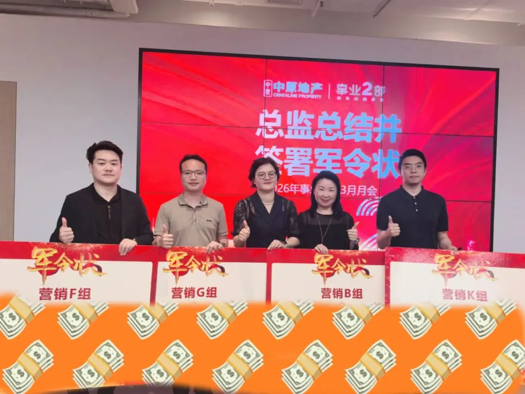 月会进入第二个环节,由各营销组总监围绕三月市场复盘与四月业绩目标进行动员发言,重点部署在售项目的去化冲刺策略、待售项目的入市节奏安排,以及应对当前市场政策与客户情绪的具体打法。随后,依次签署军令状,明确四月份的核心业绩目标。一份军令状,就是一份承诺;一份承诺,就是一份沉甸甸的担当。字字铿锵的背后,是各营销组对目标的坚定信念与破局决心。