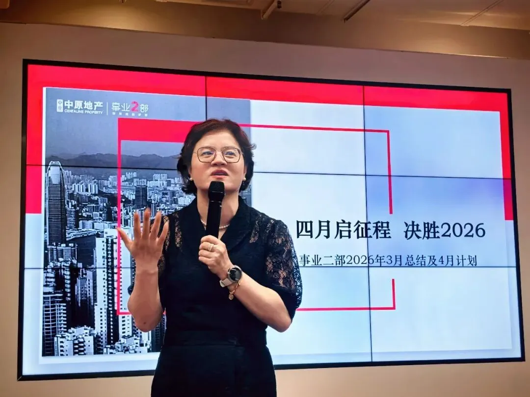 2026年4月13日晚,深圳中原事业二部以 “同心启新 聚力致远” 为主题的3月月会在海信南方大厦11楼1号会议室顺利召开。事业二部大家长黄珊珊女士、各营销组总监及策划、销售条线的核心骨干齐聚一堂,复盘过往、锚定目标,以昂扬的姿态迎接4月的新征程。